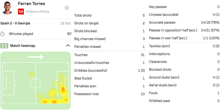 3. 费兰,西班牙对阵格鲁吉亚以2-0获胜,首发打满全场。